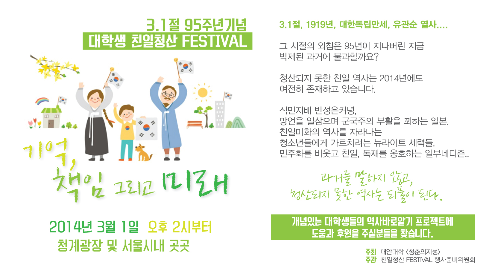 "기억, 책임, 그리고 미래" 3월 1일, 대학생들이 직접 기획하고 준비하는 친일청산 페스티벌을 응원해주세요 :)