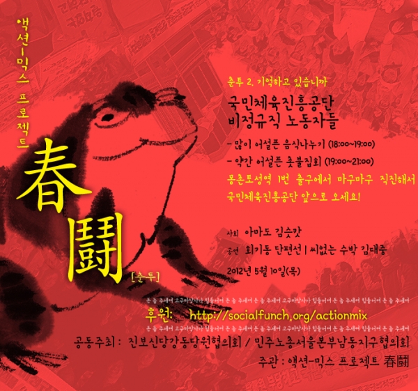 액션-믹스 '春鬪(춘투)' 두번째 발걸음은 5월 10일 목요일 오후 6시부터 국민체육진흥공단 앞에서 진행합니다.