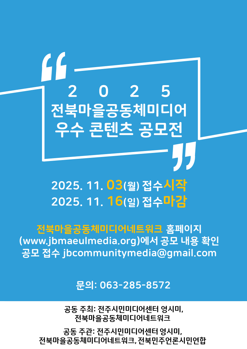 11월 3일부터 16일까지 2025 전북 마을공동체미디어 우수 콘텐츠 공모전을