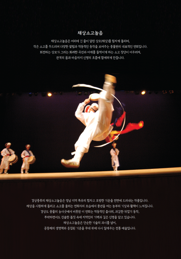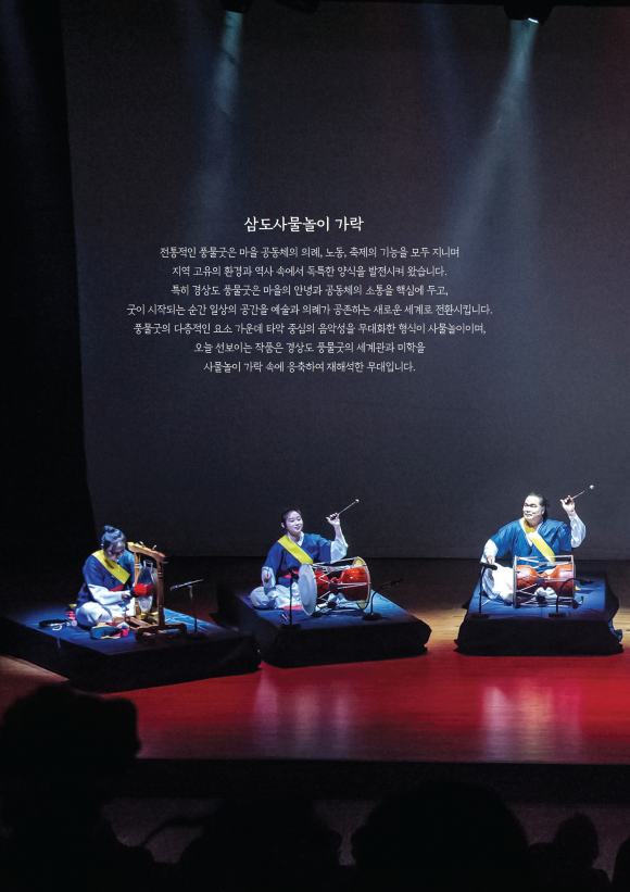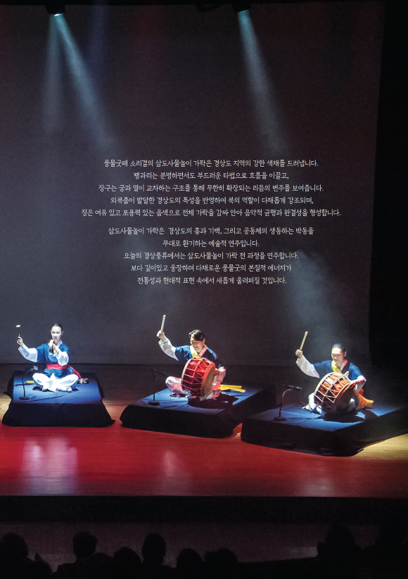 소리결만이 보여줄수 있는 무대공연작품으로 삼도사물놀이가락, 풍물판굿, 영남외북춤을