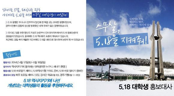 역사를 지키고 알리려는 대학생들의 활동에 지지와 후원 해주시면 정말 감사드리겠습니다. 518 홍보대사